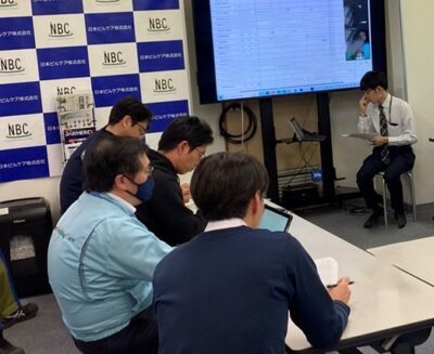 先日のテーマは“どこでも”から“日本ビルケアでなければ”と思っていただくには?というもの。グループごとに分かれ、